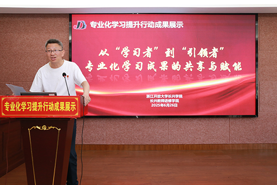 為深入踐行學(xué)院“思不足,求奮進(jìn),做更好的自己”的發(fā)展理念,推動教師實現(xiàn)從專業(yè)化學(xué)習(xí)向?qū)I(yè)化發(fā)展的跨越,促進(jìn)骨干教師經(jīng)驗共享與成果賦能,6 月 26 日上午,長興開大教師進(jìn)修學(xué)院精心組織了 2024 學(xué)年“專業(yè)化學(xué)習(xí)提升行動”成果展評活動,學(xué)院副書記孫甫永主持本次活動。