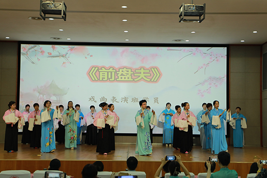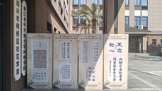 書法、攝影靜態(tài)類作品展示的現(xiàn)場設在一樓大廳,書法班學員筆力遒勁的作品傳承傳統(tǒng)文化,攝影班學員用鏡頭定格自然風光與生活溫馨瞬間,吸引眾多學員駐足。三樓報告大廳內(nèi),13個精心準備的節(jié)目輪番登場,越劇表演扮相精致、唱腔婉轉,太極拳舒緩優(yōu)雅,民族舞靈動絢麗,韻律武術剛柔并濟,合唱曲目悠揚動聽,精彩的節(jié)目表演令人目不暇接。展演活動不僅是老年學員學習成果的集中呈現(xiàn),更是他們擁抱新時代、突破年齡局限的生動見證,同時彰顯了他們積極向上的精神風貌。