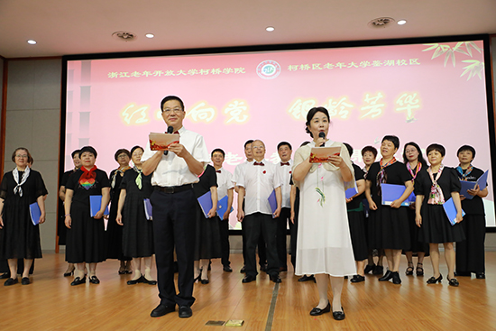 6月26日上午,浙江老年開放大學柯橋學院(柯橋區(qū)老年大學鑒湖校區(qū))舉辦“紅心向黨、銀齡芳華”2024 學年老年教育成果展演。全校師生齊聚一堂,通過靜態(tài)展示與動態(tài)展演,展示老年教育豐碩成果,展現(xiàn)老年學員老有所學、老有所樂的精神風貌。?