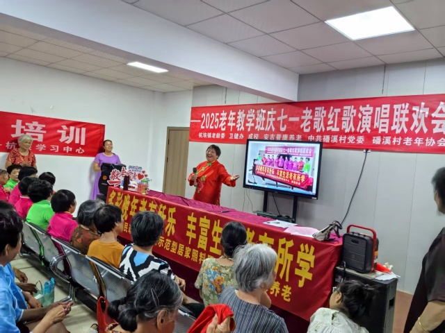 活動(dòng)在磻溪村老年協(xié)會(huì)會(huì)長(zhǎng)饒根寶老師熱情洋溢的主持中拉開(kāi)序幕。舞臺(tái)上,老年學(xué)員們風(fēng)采不減當(dāng)年,《東方紅》的旋律莊嚴(yán)響起,《沒(méi)有共產(chǎn)黨就沒(méi)有新中國(guó)》的合唱鏗鏘有力,《毛主席偉大共產(chǎn)黨恩大我們福大》等一首首鐫刻著時(shí)代記憶的經(jīng)典紅歌接連唱響。整場(chǎng)活動(dòng)共演繹18個(gè)精彩節(jié)目,激昂的歌聲在學(xué)堂內(nèi)久久回蕩,熱烈的掌聲一次次將現(xiàn)場(chǎng)氣氛推向高潮。