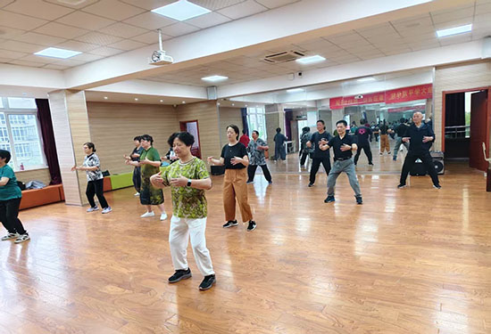 課堂上,袁老師親身示范了太極拳的動作,柔中帶剛,從各個招式看出力量集于一身。一聲跺腳,學員們大聲驚嘆,紛紛都學習了起來,通過袁老師的耐心講解,學員們不僅領略到太極拳這一傳統文化精髓的獨特魅力,還了解了太極拳的文化。學員們情緒高漲,一招一式都認真學習和交流,練習積極性很高。伴隨著舒緩而又優美的音樂,太極拳老師正揮舞雙手,快慢相間,前后左右移動,充分展示出太極拳的健身性、藝術性,深深吸引著在場學員們。