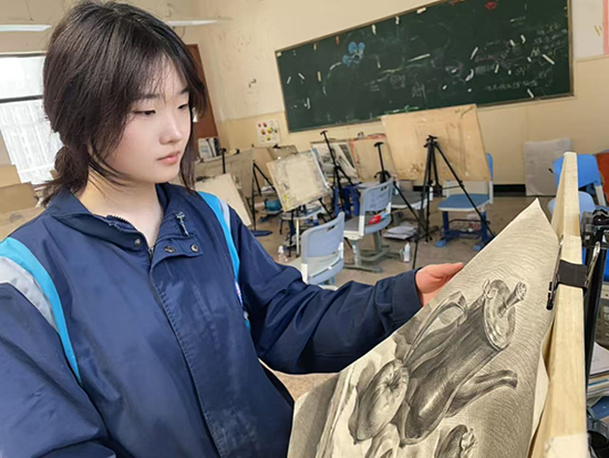 【華彩綻放】省賽頒獎臺上,她的素描作品被評價為“會呼吸的靜物”。鉛筆構(gòu)筑的陶罐里裝著兩年來的晨昏,襯布每一道褶皺都藏著不為人知的深夜。當鎂光燈再次亮起,這次照亮的已是被汗水打磨過的鉆石光芒——那些曾經(jīng)讓她跌倒的舞臺,終究成了托起夢想的云梯。