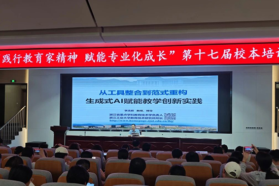 下午場以一場充滿未來感的AI講座開啟。來自浙工大的李浩君教授帶來《從工具整合到范式重構:生成式AI賦能教學創新實踐》講座。