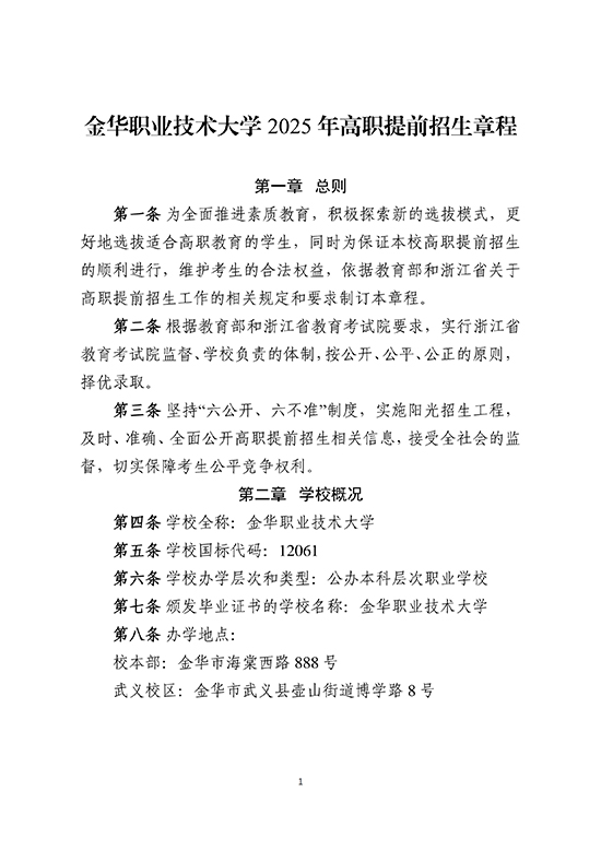 浙江廣廈建設職業技術大學2025年高職提前招生章程