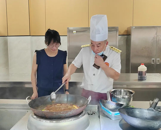 在實訓現場,專業教師將傳統技藝系統化拆解,從鴨頭處理的關鍵到鹵湯調配的核心,從水晶糕原料配比到蒸煮火候的把控,任課教師結合實操演示細致講解,讓看似復雜的制作過程變得清晰易懂。學員們專注研習,在教師手把手指導下快速上手。當親手制作的鴨頭出鍋、水晶糕成型時,滿室香氣與歡聲笑語交織成為技能傳承的生動注腳。