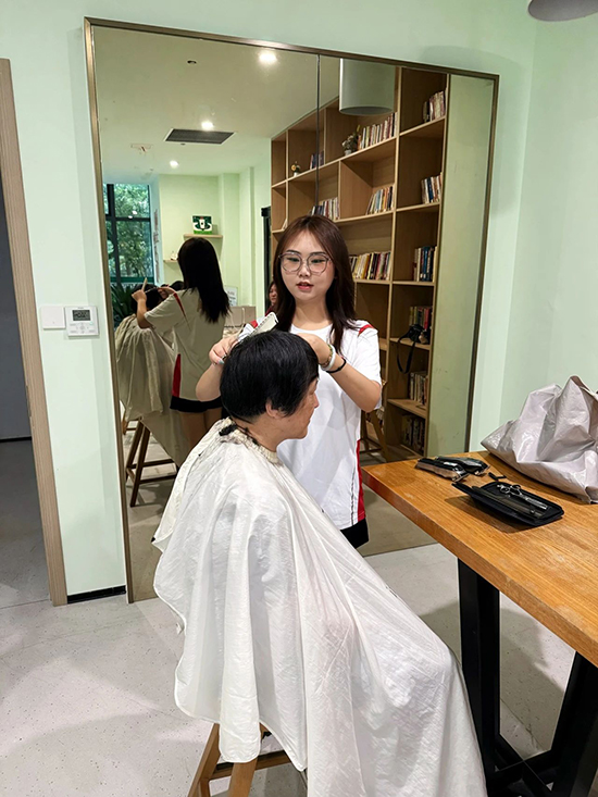 活動結束整理工具時,沈文青特意將兩把剪刀留給社區志愿者。“這把平剪處理厚重發量,牙剪打造層次感”,她的講解一如在學院授課般細致。窗外,剛理完發的聽障老人打著手語感慨:“大師們手藝好,心更亮。”