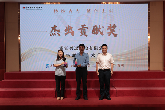 李志文校長向谷偉院長及王巧平主任頒發(fā)了“杰出貢獻(xiàn)獎(jiǎng)”,以感謝嘉興職業(yè)技術(shù)學(xué)院、浙江興遠(yuǎn)建設(shè)有限公司與學(xué)校在人才培養(yǎng)、師資隊(duì)伍建設(shè)等多個(gè)領(lǐng)域合作中所作出的卓越貢獻(xiàn)。