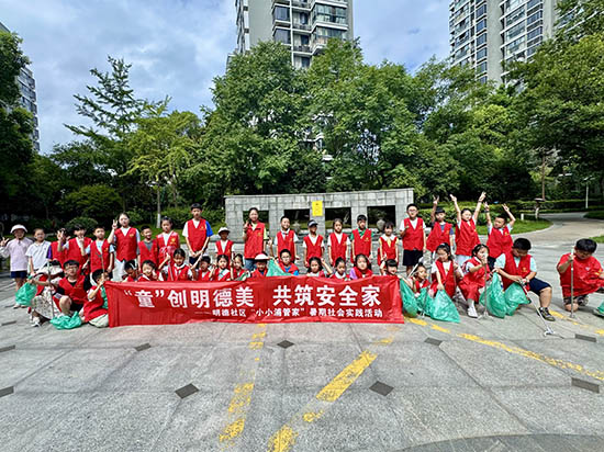 7月22日,杭州市濱江區(qū)浦沿街道明德社區(qū)“‘童’創(chuàng)明德美 共筑安全家——‘小小浦管家’”暑期社會(huì)實(shí)踐活動(dòng)火熱啟動(dòng)。四十余名社區(qū)少年兒童主動(dòng)化身家園“小管家”,以親身實(shí)踐為社區(qū)安全與清潔注入鮮活的“童”力量。