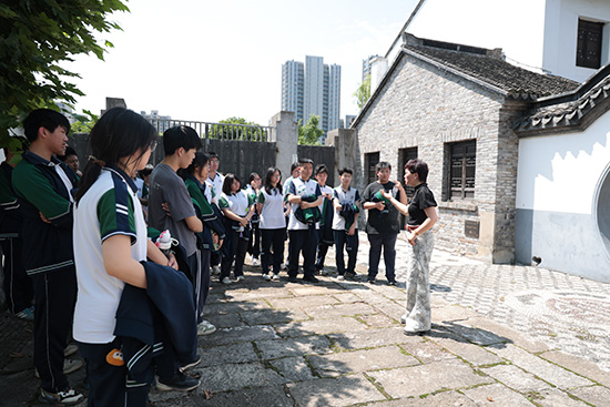 回到嘉興建校古建園,范曉春首先以時間為脈絡(luò),生動介紹了學(xué)校前身塘匯中學(xué)在歲月流轉(zhuǎn)中的歷史演變,讓同學(xué)們清晰了解學(xué)校的發(fā)展脈絡(luò)。來到厚生絲織廠舊址時,她又將這處嘉興市第二批歷史建筑的百年滄桑娓娓道來,同學(xué)們聽后深刻感知了厚生絲織廠百年間的工藝演進、建筑智慧及其作為江南紡織工業(yè)活化石的歷史價值。