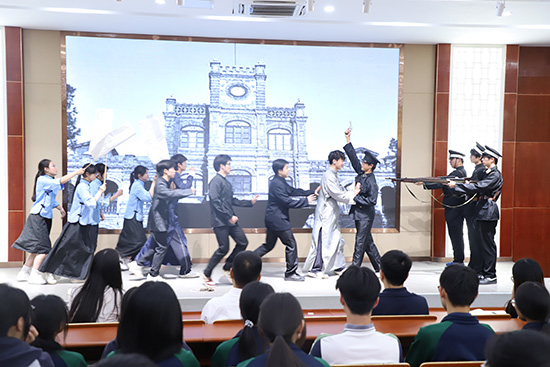 緊接著,全體師生一同沉浸式觀看了由校學生會干部出演的紅色話劇《破曉》,在跌宕起伏的劇情中重溫革命先輩的奮斗歷程,于震撼人心的演繹中深刻體悟紅色精神的時代內涵。