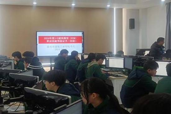 位于學校精進一樓的智能建造系智能建造技能認證基地設有1+X建筑識圖、1+X建筑信息模型(BIM)、1+X建筑裝配式虛擬仿真三大專業實訓室。其中,1+X建筑識圖實訓室與1+X建筑裝配式虛擬仿真實訓室均配備高性能雙屏計算機工作站,安裝有專業建筑軟件,輔助配備的智能教學終端、激光投影儀等設備,可實現圖紙識讀、軟件建模、虛擬仿真同步進行,助力學生高效完成識圖、繪圖、建模與設計等實訓任務。這套融合高性能硬件與專業軟件的實訓體系,構建起“圖紙識讀-三維建模-虛擬仿真-考核認證”的教學閉環,為書證融通與技能提升提供了堅實保障。