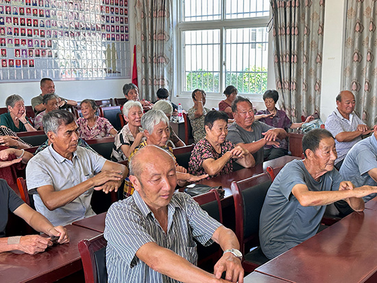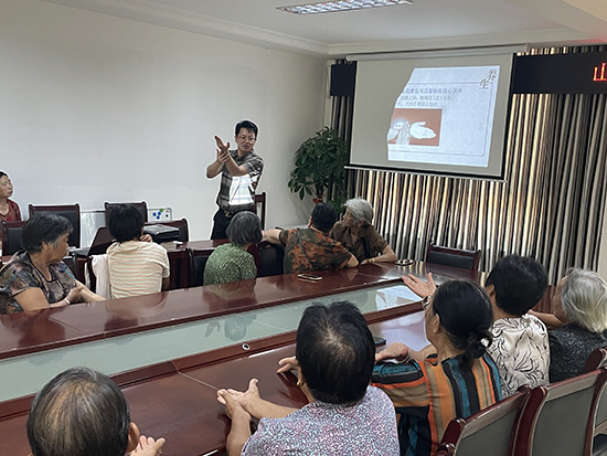 翁主任深耕臨床二十載,尤擅老年慢病調理。講座伊始,他先以“人與天地相參”的中醫整體觀破題,隨后圍繞“因人、因時、因地”三因制宜原則,將深奧的中醫理論轉化為老年人聽得懂、記得住、用得上的“保健妙招”。接著聚焦中醫養生理念,結合老年人身體特點和常見健康問題,深入淺出地講解了四季養生要點、飲食調理原則及日常運動注意事項等實用知識。特別針對立秋時節,他建議老人們飲食宜注重滋陰潤肺,可適當增加梨、百合、銀耳等食物的攝入;同時強調了良好心態和規律作息對健康的關鍵作用。