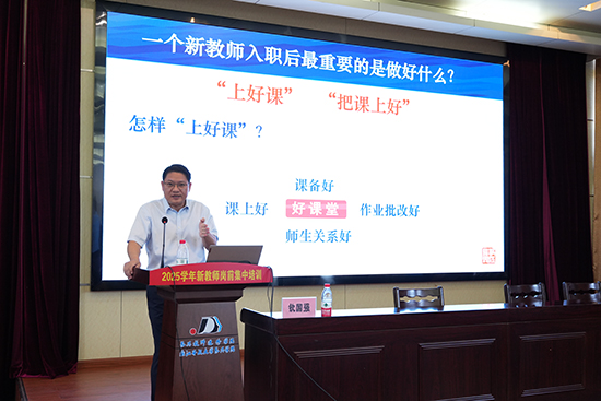 長(zhǎng)興縣教育局黨委書記、局長(zhǎng)欽國強(qiáng)開講第一課,他和新教師積極互動(dòng),圍繞“為什么當(dāng)老師”這個(gè)問題,讓新教師再次明晰自我的職業(yè)選擇和角色定位,樹立育人初心。又從“你認(rèn)為自己有哪些優(yōu)點(diǎn)適合于從事教師這個(gè)行業(yè)”“你認(rèn)為目前還有哪些不足”“你準(zhǔn)備成為怎樣的老師”等問題深入探討,在全場(chǎng)的思維碰撞中,大家對(duì)“教育”“教學(xué)”這兩個(gè)詞有了更深度的解讀和深刻的思考。長(zhǎng)興縣教育局黨委副書記雷曉財(cái)進(jìn)行《新教師的師德啟航——奠定職業(yè)生涯的道德基礎(chǔ)》的師德專題講座,他從教師要遵守的基本行為準(zhǔn)則、合理把握教育懲戒的規(guī)則、師德師風(fēng)事件處置原則三方面,進(jìn)一步強(qiáng)化了新教師要恪守師德,守牢底線不觸紅線。