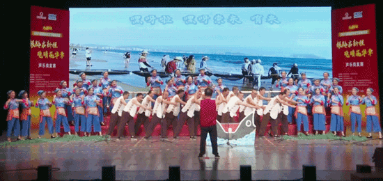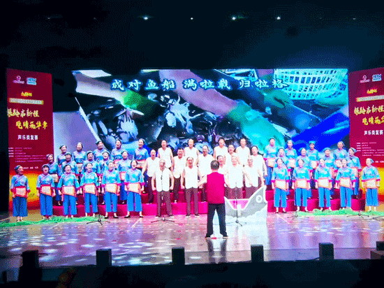 此次合唱團帶來的無伴奏混聲合唱《舟山漁工號子 漁家樂》,突破性地將《舟山漁工號子》《拔蓬號子》等國家級非遺漁歌改編為合唱形式。表演中,成員們以歌聲為筆、動作為墨,生動復刻了漁民“開洋——起錨——揚帆——捕撈——滿載而歸”的完整勞作場景,將舟山漁民與漁嫂勇于爭先的勁頭、海納百川的胸懷與熱愛生活的熱忱展現得淋漓盡致。