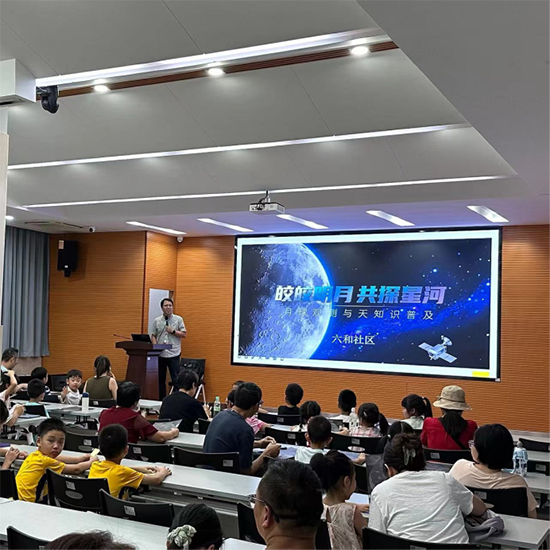 “纖云弄巧,飛星傳恨,銀漢迢迢暗度。”8 月 28 日晚,杭州市濱江區浦沿街道六和社區一場以 “皎皎明月,共探星河” 為主題的天文科普活動圓滿落幕。近百名社區居民暫別城市喧囂,齊聚社區新時代文明實踐站與浦沿漁碼頭旁網紅大草坪,在中國天文學會會員、浙江省天文學會理事鄒小斌老師的帶領下,開啟了一場融合詩詞意境、月相科普與天文觀測的奇妙之旅——從詩詞里的 “陰晴圓缺” 到望遠鏡下的環形山,讓這個仲秋夜因月光與星光的交織而格外動人。