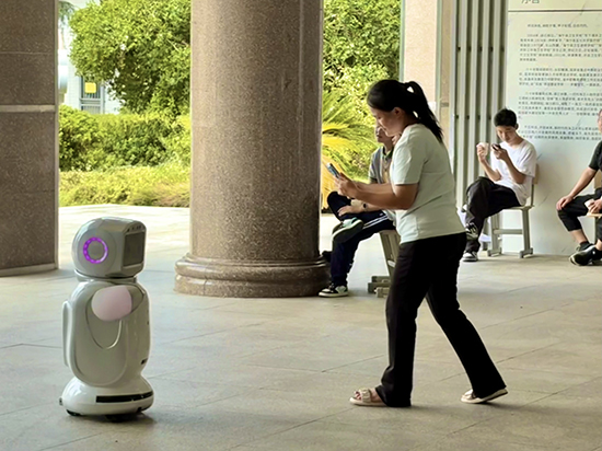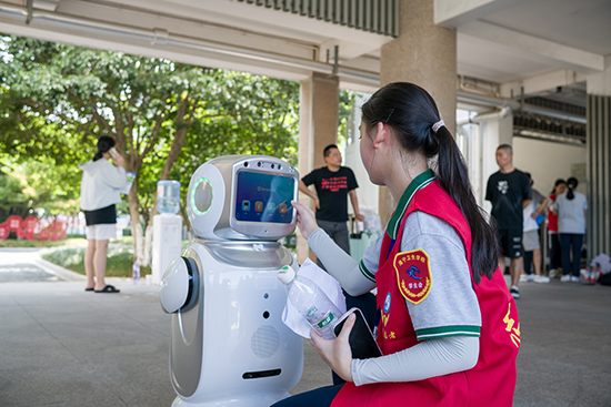 志愿者臉上滿是熱情的笑容,自然地接過新生的行李,大廳里還有可愛的智能機器人擺動著手臂說著歡迎詞和報道流程,迎接他們的到來。隨后志愿者們帶領新生走教室、寢室,參觀校園,接過你手中的行囊,從此我們就是一家人。校園里各處的橫幅和浪浪山小妖怪,讓新生感受到了校園的親切和歡迎,讓大家倍感溫暖。