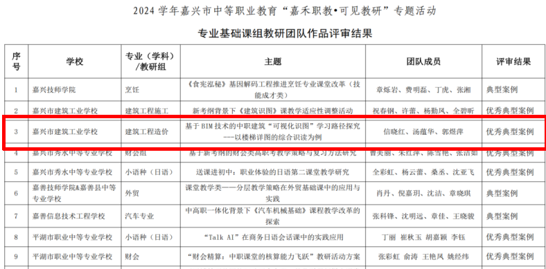 通過(guò)本次“嘉禾職教·可見(jiàn)教研”專題活動(dòng),工程造價(jià)組將BIM技術(shù)深度融合教學(xué),學(xué)生識(shí)圖能力實(shí)現(xiàn)三大突破:踏面混淆率從72%降至20%,識(shí)圖效率提升50%,90%學(xué)生掌握復(fù)雜空間投影邏輯。團(tuán)隊(duì)開(kāi)發(fā)的《建筑平面圖識(shí)讀與繪制》校本教材入選30個(gè)BIM案例,配套8個(gè)動(dòng)態(tài)微課破解教學(xué)難點(diǎn)。