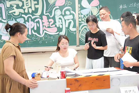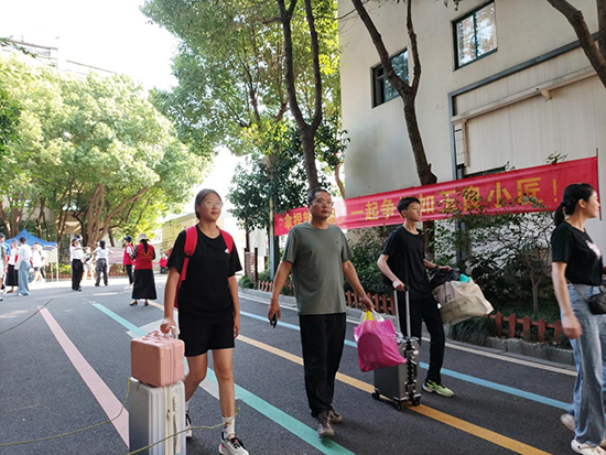 校門口,身著志愿服裝的學生及黨員志愿者早早等候在校門口。“家長您好,報到請往這邊走。”在迎新現(xiàn)場,一群佩戴著黨徽的黨員教師和學生志愿者一起成為了最亮麗的風景線。黨員教師們充分發(fā)揮先鋒模范作用,沖鋒在前,耐心細致地為新生和家長解答報到流程,教室指引等問題。他們早早來到各自崗位,主動承擔起熱情接待、引導咨詢、秩序維護等工作。 從校門口到報到點,從教學樓到宿舍,隨處可見他們忙碌的身影。一句句親切的問候,一次次熱心的幫助,不僅緩解了新生初來乍到的陌生感與焦慮感,也讓家長們對學校充滿了信任與放心。