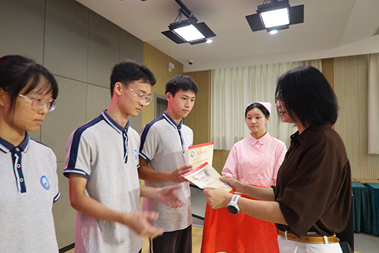 教師代表沈苞潔老師溫情寄語,在陪伴和見證同學們成長和蛻變,以閃耀賽場的同學為例,勉勵同學們堅定信念,不忘初心,勇于挑戰,珍惜過程,善待時光。