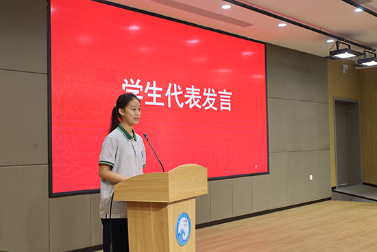 學生代表2401班胡予玄同學發言。得失皆成文章,冷暖俱是滋養。胡同學分享社團和備賽經歷中的成長心得,鼓勵同學們以奮斗題序,用熱愛賦章,在青春的卷軸上寫下星辰奔涌、永不褪色的燦爛詩行。