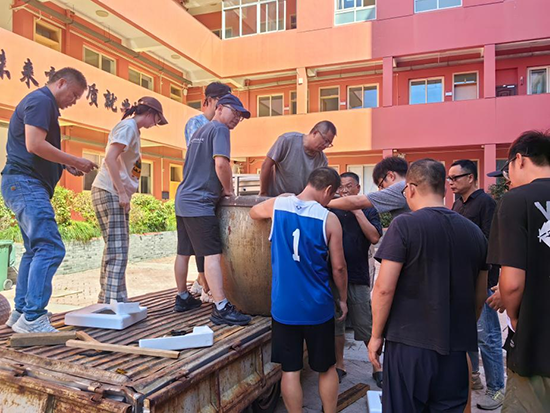 搬運現場,行政干部們二話不說,挽起袖子一起發力,或是扶穩缸身,或是清理安置點。這里,沒有命令,沒有指派,只有默契與共識——這口缸,必須安穩落地,就像龍職的精神,必須代代相傳。缸雖重,情更重。它不再只是一口缸,而是“龍職四見精神”的象征:見行動——人人伸一把手;見速度——迅速響應齊上陣;見成效——安全運抵新家;見品質——安置得端莊穩妥。