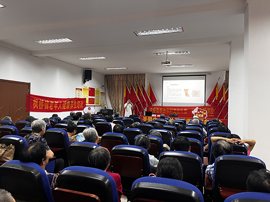 8月28日下午,諸暨市楓橋鎮(zhèn)社區(qū)教育學校連同諸暨市第二人民醫(yī)院中醫(yī)科副主任鐘強、預防保健科孟建鋒來到楓橋鎮(zhèn)永安新村,在文化禮堂內對老年人進行健康科普。