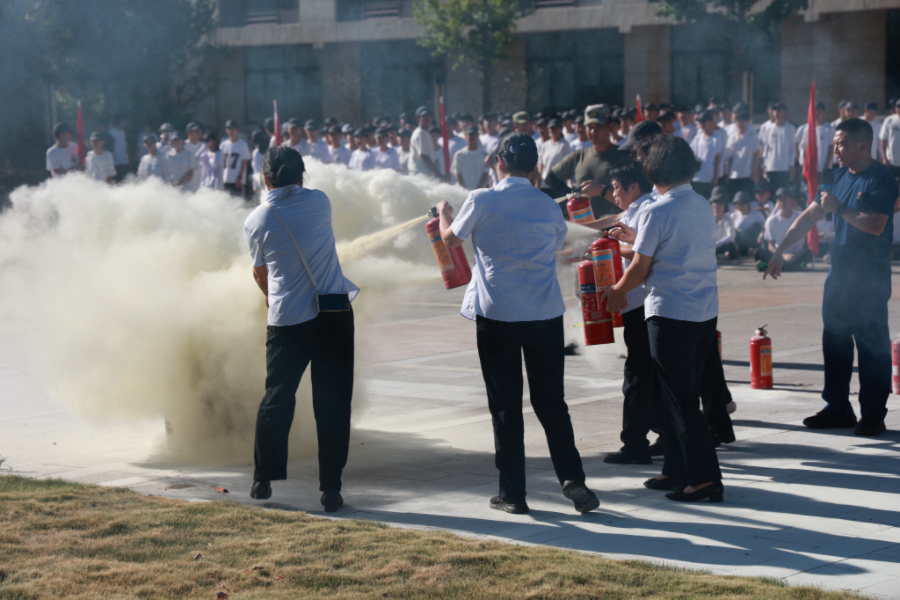 全體人員安全抵達操場后,柳市鎮消防隊李隊長結合校園常見火災案例,系統講解了防火常識、火場逃生技巧、報警程序及注意事項,語言生動、內容詳實,師生認真聆聽、積極回應。隨后,李隊長現場演示干粉滅火器的正確操作方法,“一提、二拔、三握、四壓”每個步驟細致清晰。在教官的指導下,多名學生代表及后勤人員踴躍參與實操演練,成功完成滅火任務,進一步鞏固了消防技能。