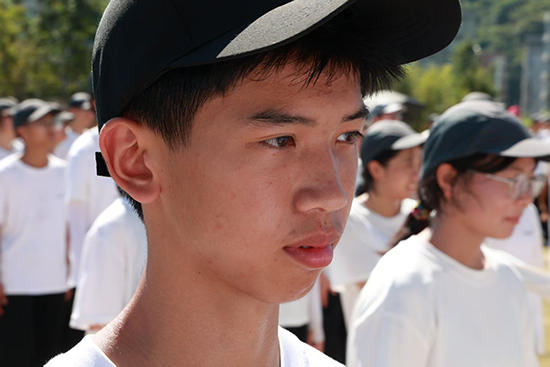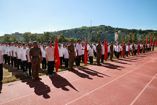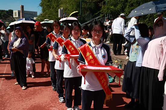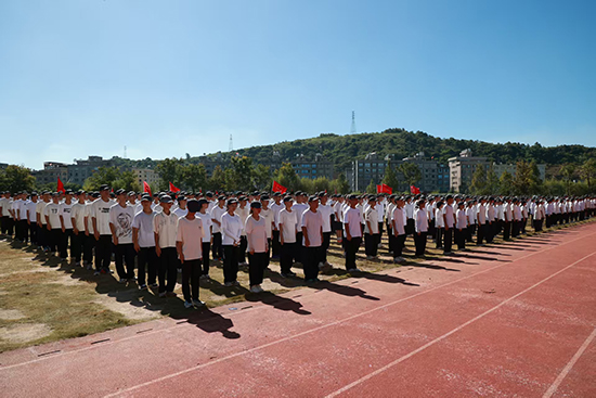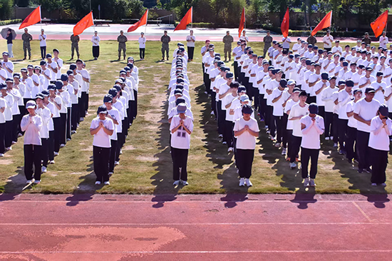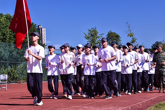 士氣展示環節,各班方陣如同即將出征的勇士,依次雄赳赳地登場。“不負韶華,強國有我!”那一聲聲吶喊響徹校園。停止間課目展示,立正時紋絲不動;轉動時整齊劃一;敬禮時盡顯軍人風采。每一個看似簡單的動作背后,都是無數次的千錘百煉。