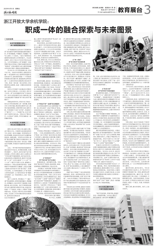 堅定的信念,堅實的足跡。從課程共享到師資互通,從實踐拓展到成長跟蹤,余杭學院發展的每一步都折射出對“人的終身發展”這一教育歸宿的深切回應。沒有深厚積淀,沒有規模優勢,甚至沒有足夠的人力支撐,唯有在治理重構、資源共融、評價創新中“日拱一卒”,唯有在職成一體的發展大勢與未知之境中勇毅前行。