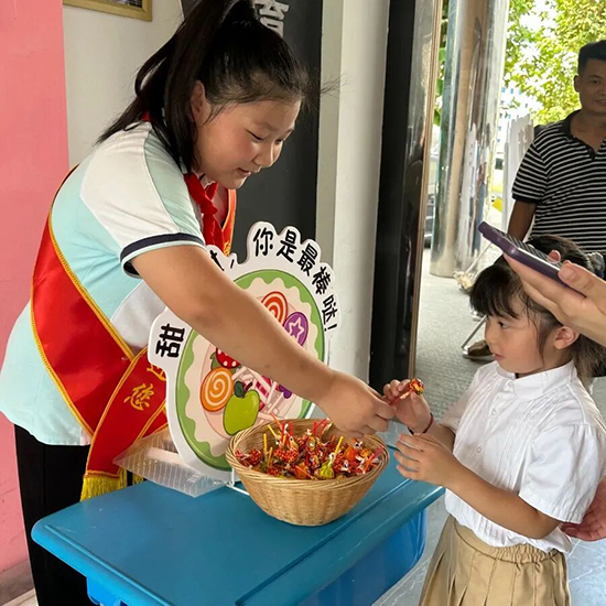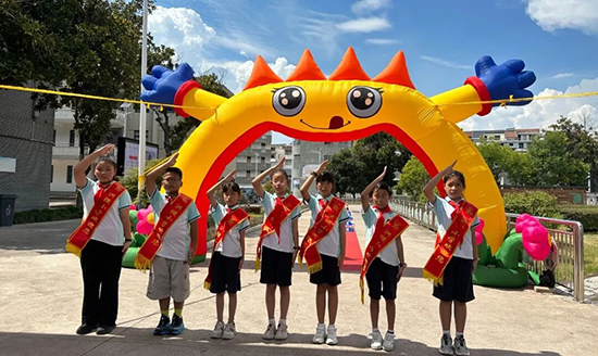 跨越“五自”邁向成長。校門口,五年級的學長學姐們身著整齊的校服,佩戴紅領巾,笑容燦爛地迎接新同學的到來。新生們踏上紅地毯,依次跨過五個寓意深遠的小路障:“生活自理”“學習自覺”“行為自律”“文化自信”“人格自強”。每一步,都是對成長的致敬;每一跨,都是對未來的期許。希望每一位新生都能成為“五自少年”,自信、自律、自強地走向更廣闊的天地。