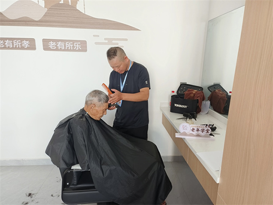 另一邊的免費理發區域同樣熱鬧非凡。理發師們攜帶專業的理發工具,以嫻熟的技藝和熱情的服務,為老年學員們修剪頭發。他們一邊理發,一邊與老人們親切交談,詢問他們喜歡的發型樣式,盡可能滿足每位老人的需求。理完發后,老人們看著鏡子里精神煥發的自己,臉上都露出了滿意的笑容,不停地向理發師道謝。一位剛理完發的老奶奶開心地說:“理發師手藝好,理得又快又好,感覺自己一下子年輕了好幾歲,太謝謝你們了!”
