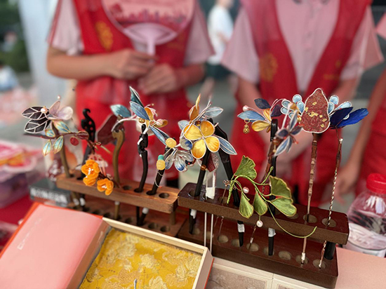 木棉文創團隊由學校張冰筠老師創立,專注于非遺絨花與纏花技藝的創新設計與制作,承擔了湖州市青年文化英才項目。團隊作品屢獲認可,代表作《又見青綠》纏花團扇獲丹麥安徒生國際藝術展金獎,成功將中國傳統工藝推向國際舞臺。(王津)