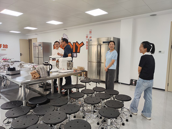 在郭士斌校長的陪同下,金鳴書記、夏筱丹委員逐一參觀了新校區的多媒體教室、烘焙教室、書法教室、圖書閱覽室等功能室,詳細詢問各功能室的設施配置、使用規劃及教學開展情況。每到一處,領導們都與教職工親切交流,了解大家在新環境中的工作狀態,傾聽辦學需求與建議。