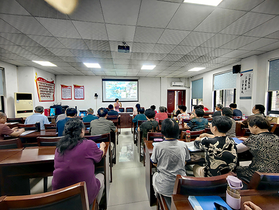 課堂上,鄧念梅老師從歌曲背景、旋律特點到演唱技巧進行了細致講解,并逐句示范教學(xué)。學(xué)員們學(xué)習(xí)熱情高漲,跟隨老師的節(jié)奏反復(fù)練習(xí),歌聲婉轉(zhuǎn)悠揚,現(xiàn)場氛圍熱烈而溫馨。鄧老師表示:“《瀏陽河》不僅旋律優(yōu)美,更承載著深厚的文化情感。希望通過這樣的教學(xué),讓更多居民在音樂中感受傳統(tǒng)藝術(shù)的魅力。”