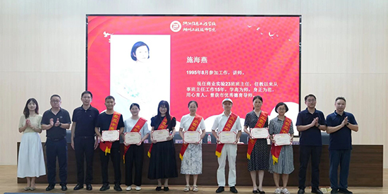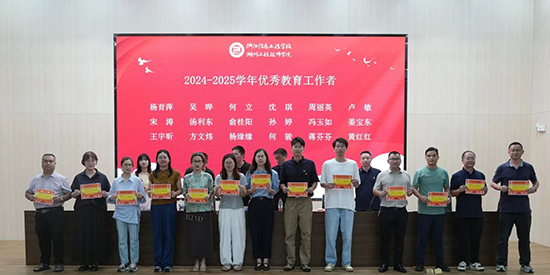 獲獎教師們依次上臺接受表彰,校領(lǐng)導(dǎo)們?yōu)楂@獎教師頒發(fā)獎狀及榮譽證書,以肯定他們對教育事業(yè)的辛勤付出。