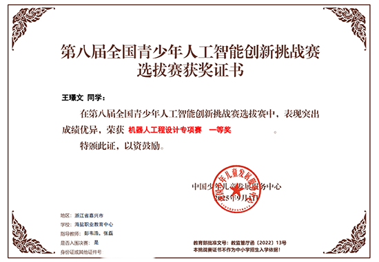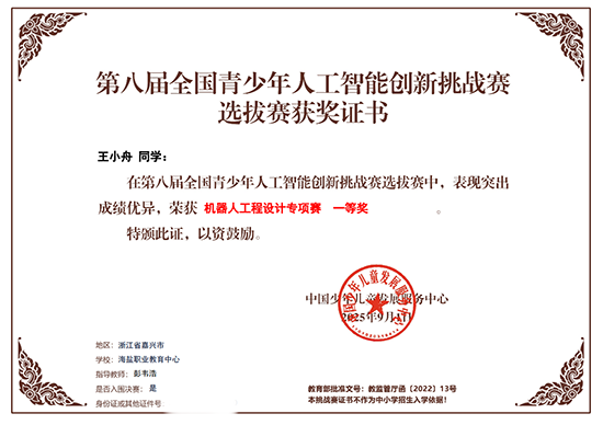 該校負責人表示,此次獲獎是學校積極響應教育部關于提升青少年科學素養與創新能力號召的生動實踐,不僅充分展現了學校信息工程與電子學部在人工智能領域教學與訓練的顯著成效,更是學校、學部、教研組以及指導教師團隊精誠協作、銳意進取的成果結晶。期待晉級的三位選手珍惜榮譽,戒驕戒躁,以更加精湛的技術和更加沉穩的心態迎接全國高手的挑戰,力爭在國賽舞臺上再創佳績!(彭韋浩)