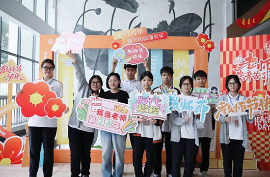 “老師,您辛苦了”“教師節快樂”“桃李滿天下”“歲月芳華,時光因你而充實”在寫滿祝福語的主題背景前,老師們手持節日禮品與特色手牌定格留影。燦爛的笑容、溫馨的互動,每一張合影都記錄著“2025教師節”的“獨家記憶”。