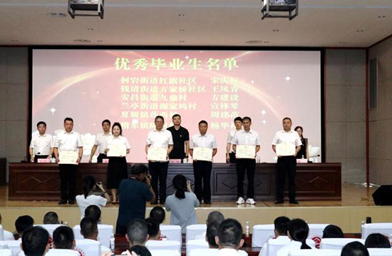 隨后,16位鎮(zhèn)街學員代表分批上臺領取證書,6位學員獲評“校優(yōu)秀畢業(yè)生”并接受表彰。