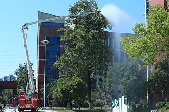廣場上,消防隊(duì)員們還展示了消防作業(yè)車及登高救援設(shè)備,這些平時(shí)難得一見的“消防利器”吸引了眾多師生的目光。消防隊(duì)員們一邊進(jìn)行現(xiàn)場講解,一邊熟練地操作設(shè)備進(jìn)行演示。他們?cè)敿?xì)介紹了消防作業(yè)車的功能和使用方法,以及登高救援設(shè)備在高層建筑救援中的重要作用。通過這種現(xiàn)場講解與演示,同學(xué)們對(duì)消防救援裝備有了更直觀、更深入的認(rèn)識(shí),仿佛打開了一扇通往消防世界的大門。這不僅增強(qiáng)了消防安全知識(shí)的實(shí)踐性,也讓同學(xué)們深刻感受到了消防工作的艱辛和偉大。