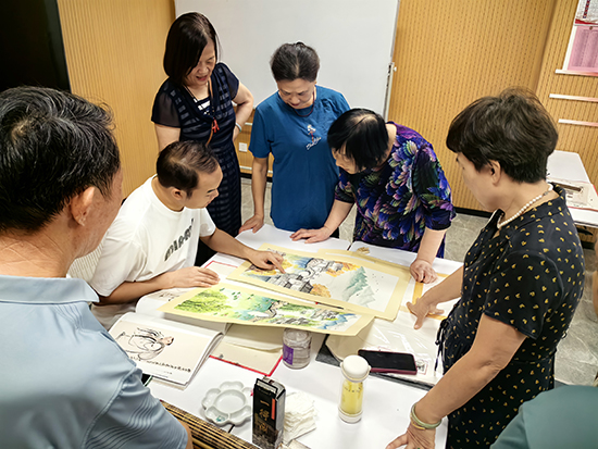 國畫課上,教師從簡單的花朵題材入手,手把手教大家調墨、運筆。“你看這朵花的色彩過渡,多練幾次就能畫得更加鮮活。”學員們圍坐一起,拿著畫筆細細琢磨,原本空白的畫紙上,漸漸綻放出鮮艷的花卉,滿是生活意趣。