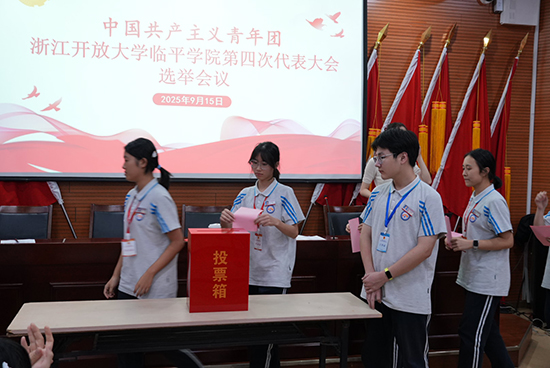 共青團浙江開放大學臨平學院第四次代表大會在雄壯激昂的《中國共青團團歌》聲中勝利閉幕。