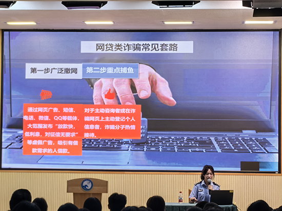 隨后,費警官詳細介紹了當前高發的詐騙類型,包括網絡貸款詐騙、兼職刷單類詐騙、網絡消費類詐騙、冒充身份類詐騙以及游戲類詐騙等。她結合近期發生的典型案例,揭示了詐騙分子的慣用伎倆和心理戰術,讓同學們對詐騙的隱蔽性和危害性有了更直觀的認識。