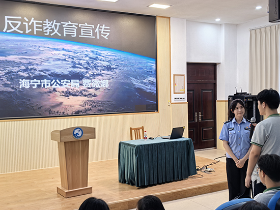為進一步提高師生的防詐騙意識,9月17日,海寧衛生學校(海寧市綜合高級中學)邀請海寧市公安局法制大隊民警費微娜為全校師生開展了一場生動的反詐宣傳講座。講座中,費警官結合真實案例,深入淺出地講解了當前常見的詐騙手段及防范方法,課堂氣氛熱烈,學生參與積極性極高。