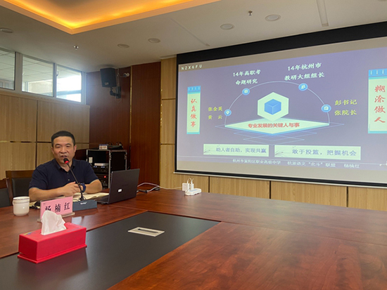 次日活動精彩繼續。富陽學院青年教師費凡呈現了一節題為《六國論》的公開課。她以“擊鼓傳花”游戲激發學生的閱讀興趣,以文本理解替代傳統的文言分析,課堂設計精巧、富有智慧,贏得聽課教師一致好評。此后,富陽區職業高級中學語文教研組長夏勇開展《守語文之本,育時代新人》專題講座,從理念基石、實踐核心與長效保障三方面,分享學校語文教研組建設的探索與思考,致力于構建契合職教學生特點的語文教學路徑,引起廣泛共鳴。緊接著高三語文備課組長任福彬以《集智教研,精準施策》為主題,詳細介紹了學校高三語文復習的協同教學模式,展現備課組在備考過程中的溫度與專業深度。活動的最后環節,與會教師圍繞“依標命題、隨文設題”等議題展開深入研討。