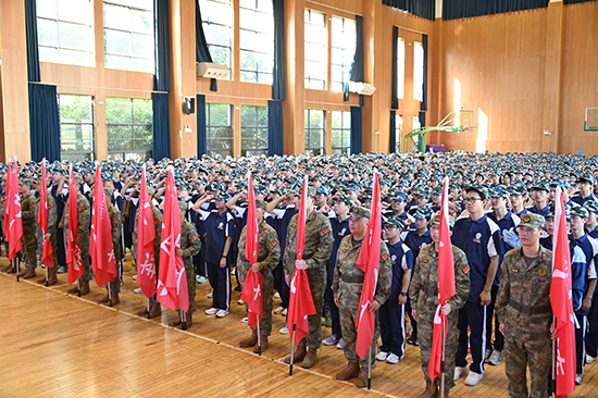 杭州市臨平區喬司街道人武部承擔本次軍訓指導,在開營儀式上,學校領導向軍訓團授旗,副校長喻新凱作動員講話,他希望同學們端正態度,頑強拼搏;團結協作,互幫互助;遵守紀律,服從指揮,圓滿完成軍訓任務。