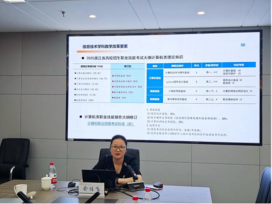 18日上午,浙江省教育廳職成教教研室教研員俞佳飛帶來《浙江省中職信息技術學科課堂教學改革交流》主題講座,為本次教研活動注入了前沿理念與專業(yè)智慧。