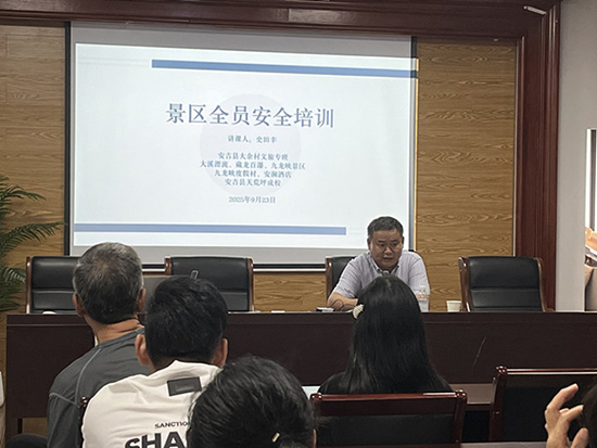 9月23日下午3時(shí),在今年國(guó)慶“十一”黃金周到來(lái)前夕,由安吉縣大余村文旅專班和安吉縣社區(qū)教育學(xué)院天荒坪分院(天荒坪成校)聯(lián)合開(kāi)展的藏龍百瀑等景區(qū)(酒店)員工全員安全培訓(xùn)在大溪村村委會(huì)三樓會(huì)議室舉行。