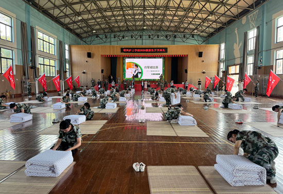 為豐富紹興護士學校新生軍訓期間文化生活,提升學生執行力、內務整理水平,引領學生樹立正確勞動觀,近日,紹興護士學校在體藝館舉行了2025級新生疊被子比賽。