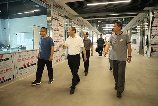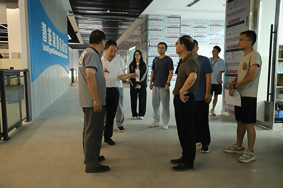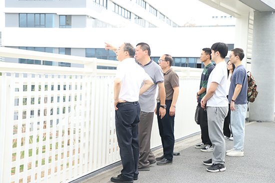 在張武劍和王志勇的帶領下,胡會長一行參觀了校園,了解了學校的發展歷史,并實地考察了交通運維與智能制造實訓室的建設進度與設備投入情況,對新校區的新面貌贊嘆不已。