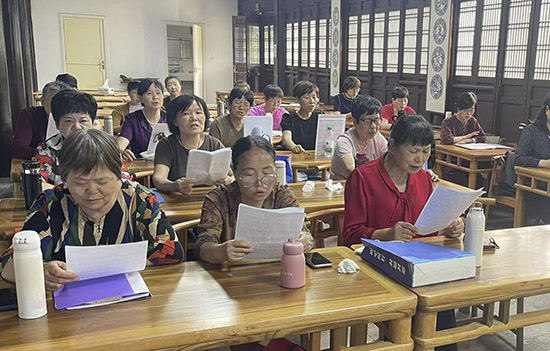 近日,柯橋成人文化技術(shù)學校攜手梅隴社區(qū)與柯迎社區(qū),共同啟動 “唱紅歌、熱人心” 紅色歌曲系列培訓活動,特邀專業(yè)指導老師吳丹授課,吸引了 60 余位熱愛音樂、心系紅色文化的社區(qū)居民積極參與。